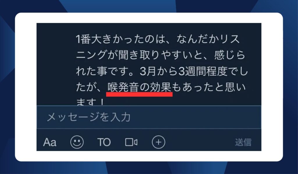 喉発音の効果でリスニングが聞き取りやすいと感じました。