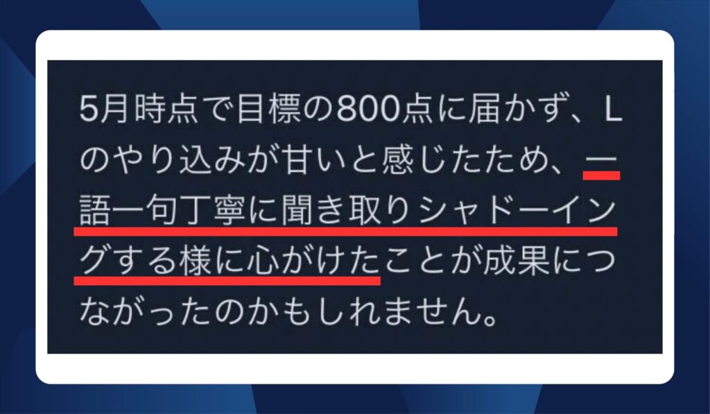 リスニングのやり込みが甘いと感じ、一語一句丁寧にシャドーイングするよう心がけました。