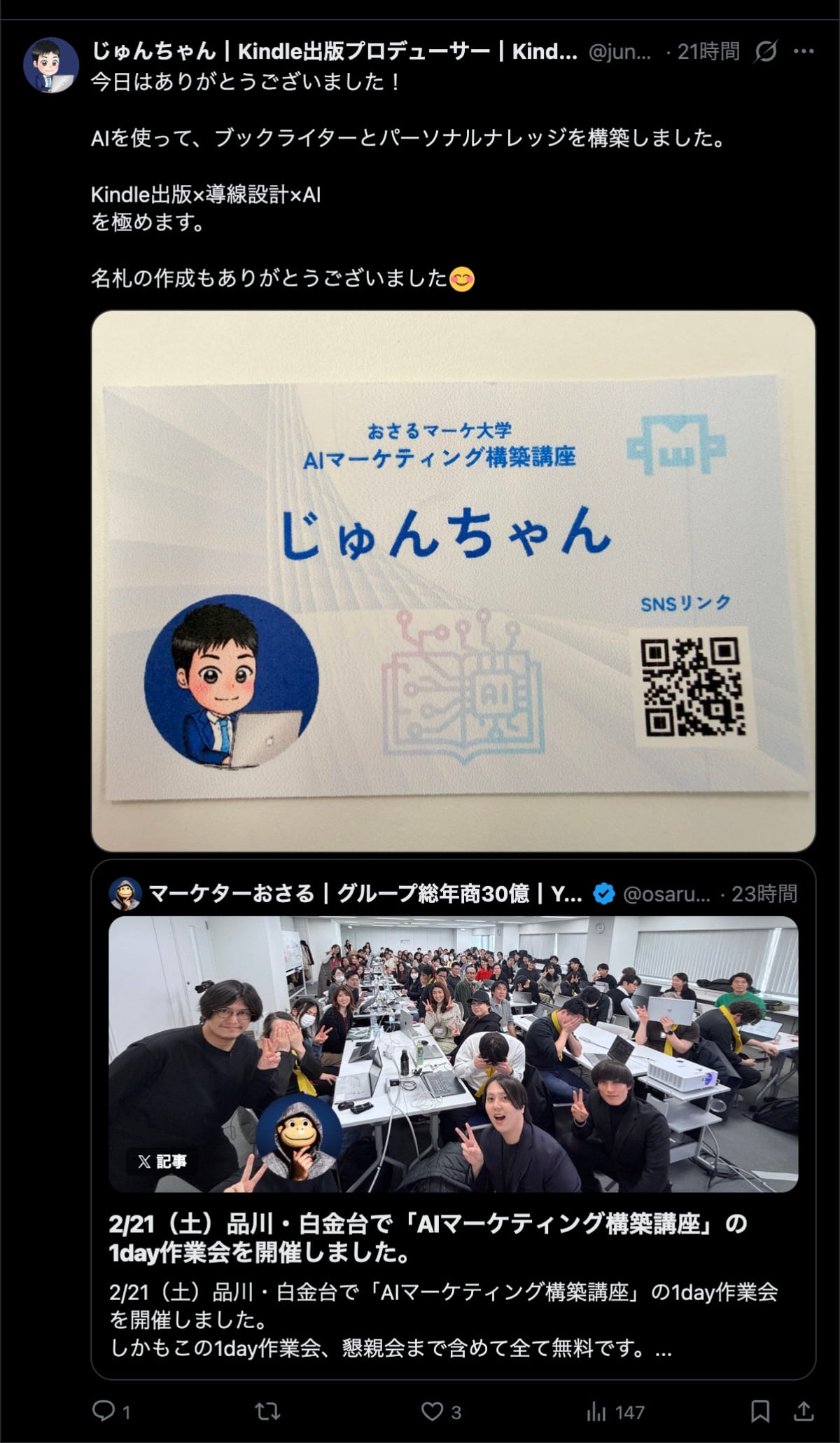 - 事業者向けAIxSNSマーケ講座主催(受講生:60名)