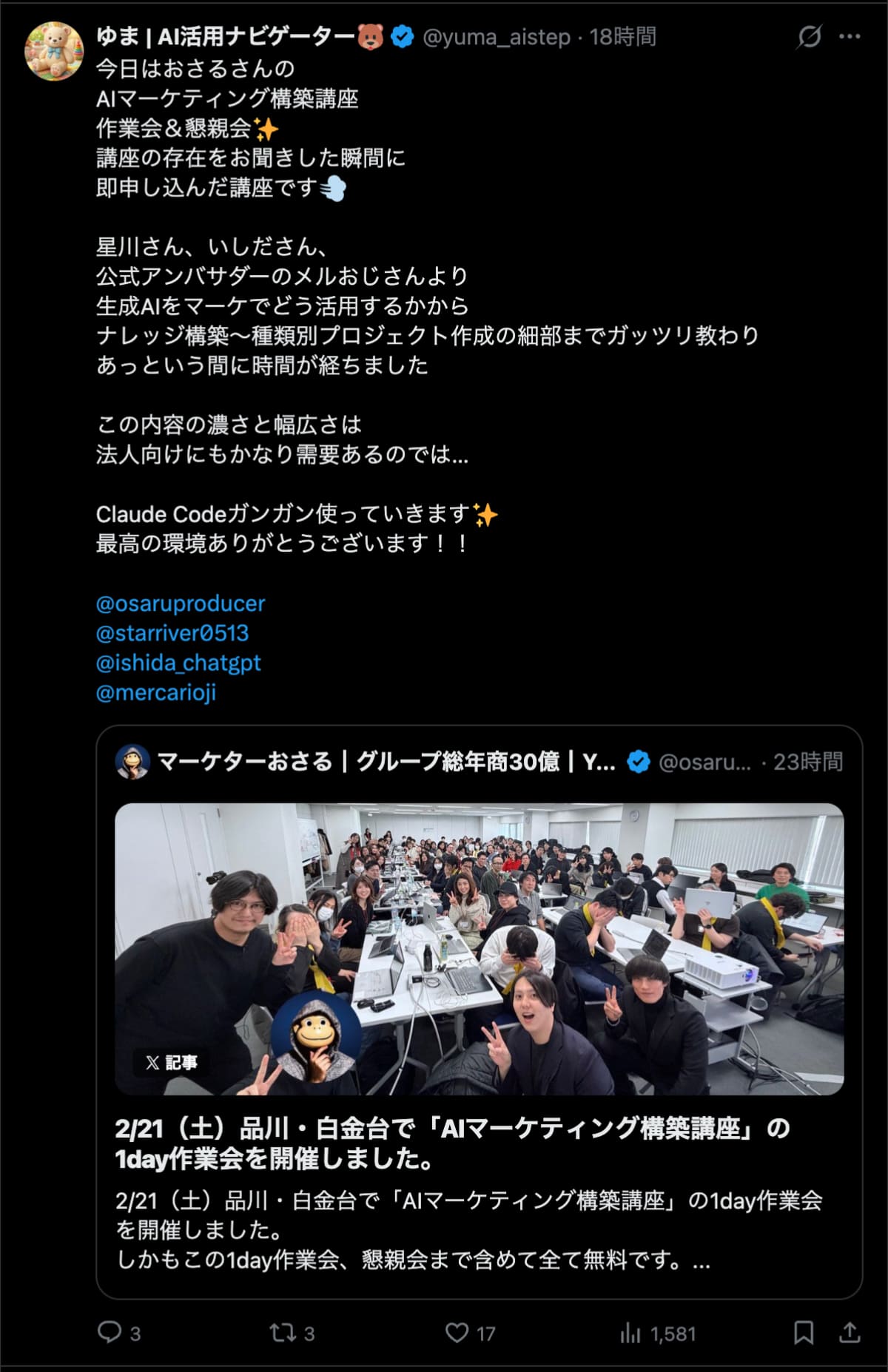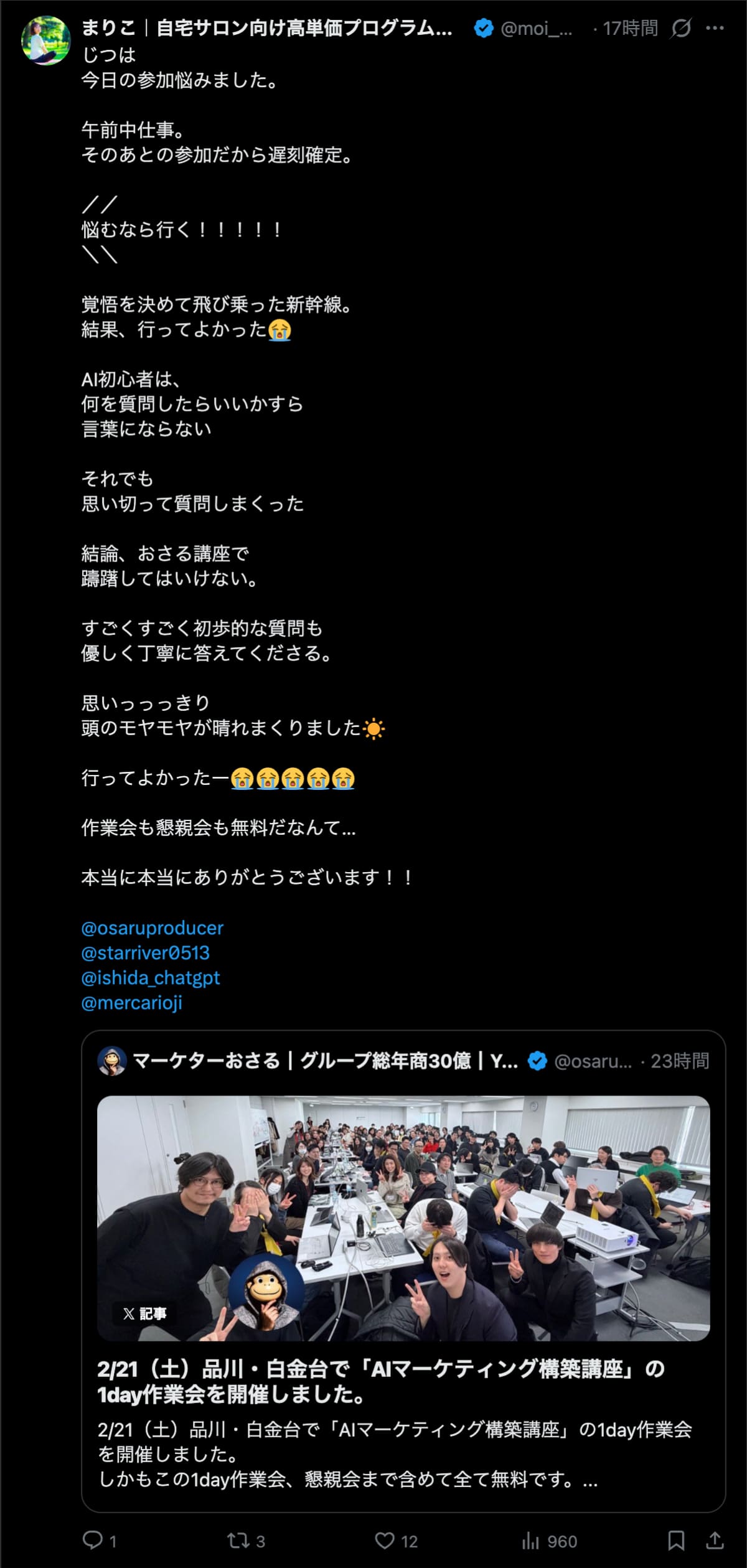 - 「AIは完全に初めてです」と宣言してくれた人