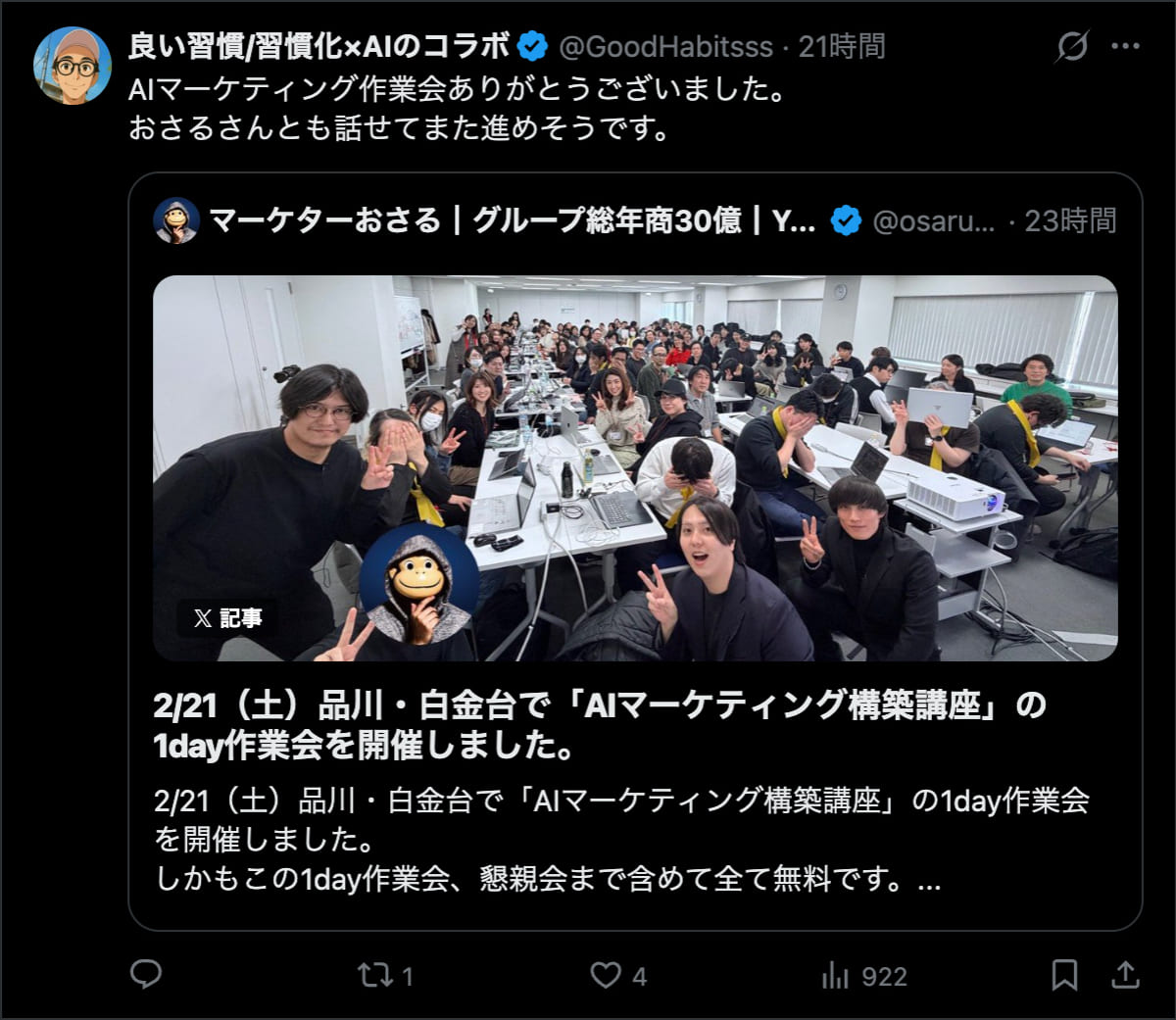 おさるAI × ローンチプログラム1Day合宿の詳細はこちら