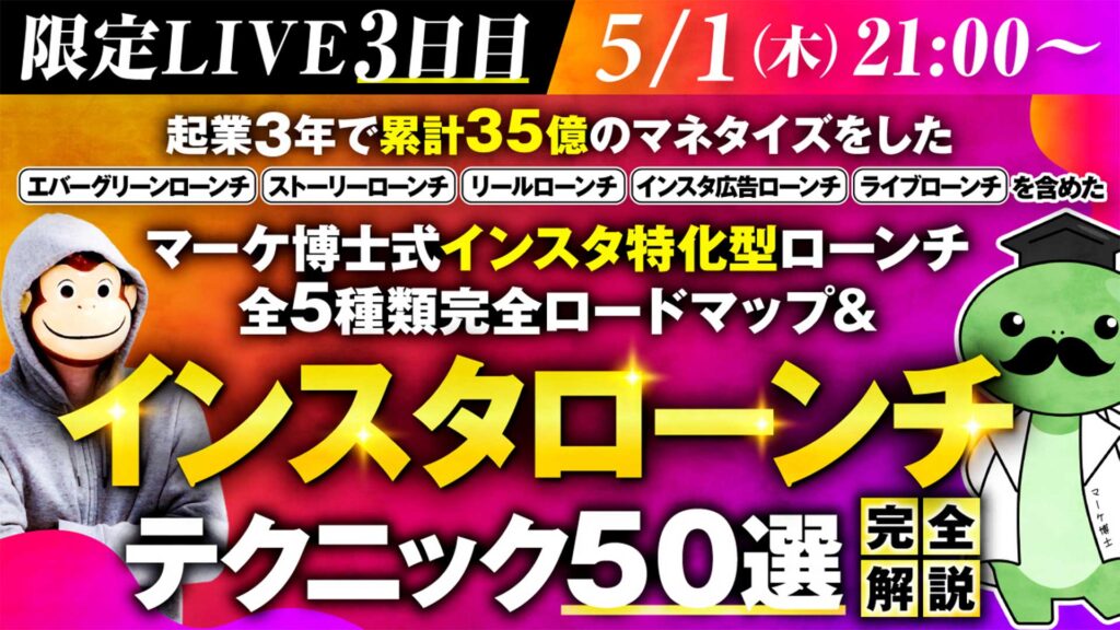 これらのインスタマネタイズで必要なすべての項目を網羅的に学ぶことができます。