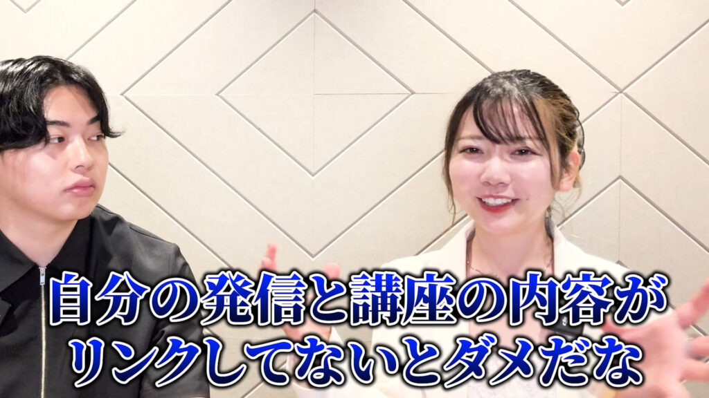 ゆい先生:あとから「一貫性って本当に大事だな」と感じました。発信と商品にズレがあると、セールスのときに話が伝わりにくくなるし、説得力も落ちてしまう。逆に、内容が一致してからは「この人から学びたい」と思ってもらえるようになりました。