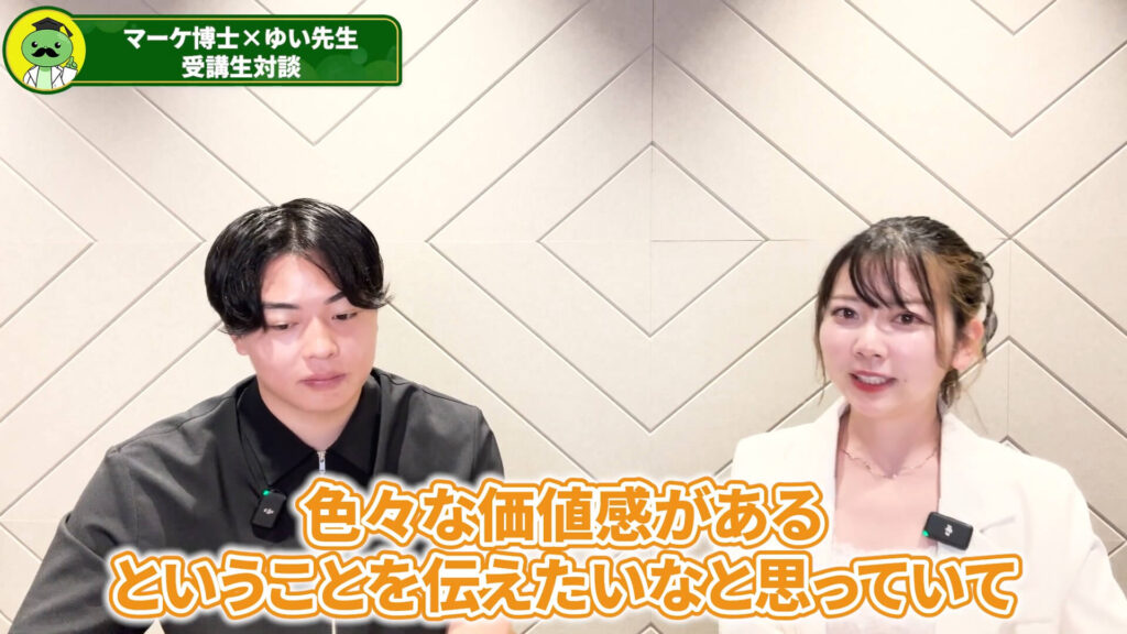 マーケ博士:今回はQMPSSの受講生、ゆい先生にお越しいただきました!よろしくお願いします。