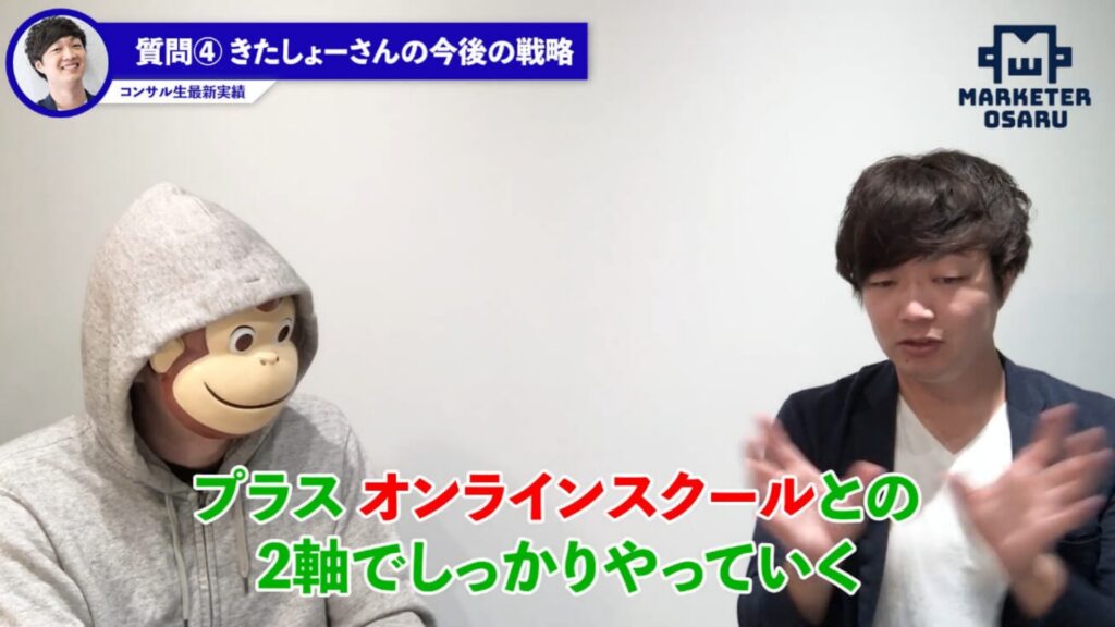 きたしょー:本当にそうでした。そんなときにおさるさんから「オンラインサロンは強者の戦略だ」と言われ、すごく腑に落ちました。初回の入会金を高めにしたり、上級者向けに縛りをつけたり、しっかりした構造がないと売上も気力もすり減っていくだけだと気づきました。