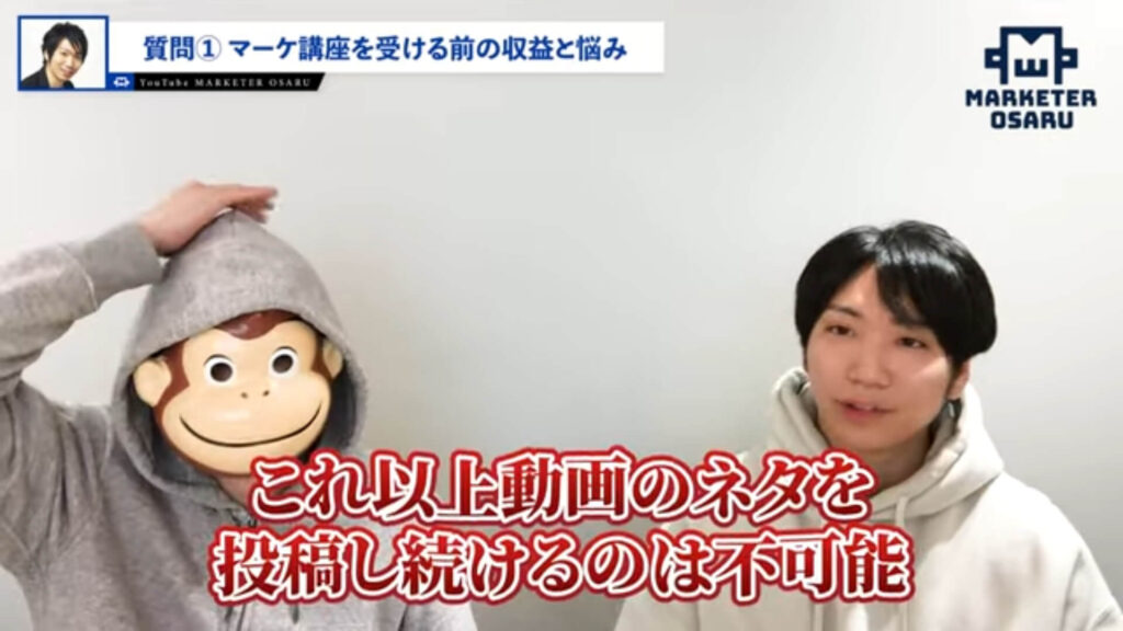 おさる:YouTubeの広告収益で月500万円・月300万円をマネタイズできていた金子さんですら不安に思っているので、不安に感じているYouTuberやYouTubeで発信されている方は多いと思います。YouTubeを使ってどう自社商品に販売するのかという、売上を伸ばす方法がまだわかっていない方や最適化できていない方は多いと思います。