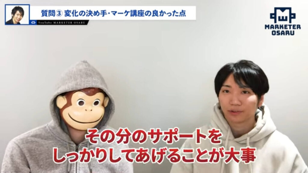おさる:僕の講座の良かったところや変化の決め手となったものを1つずつお願いできますか?