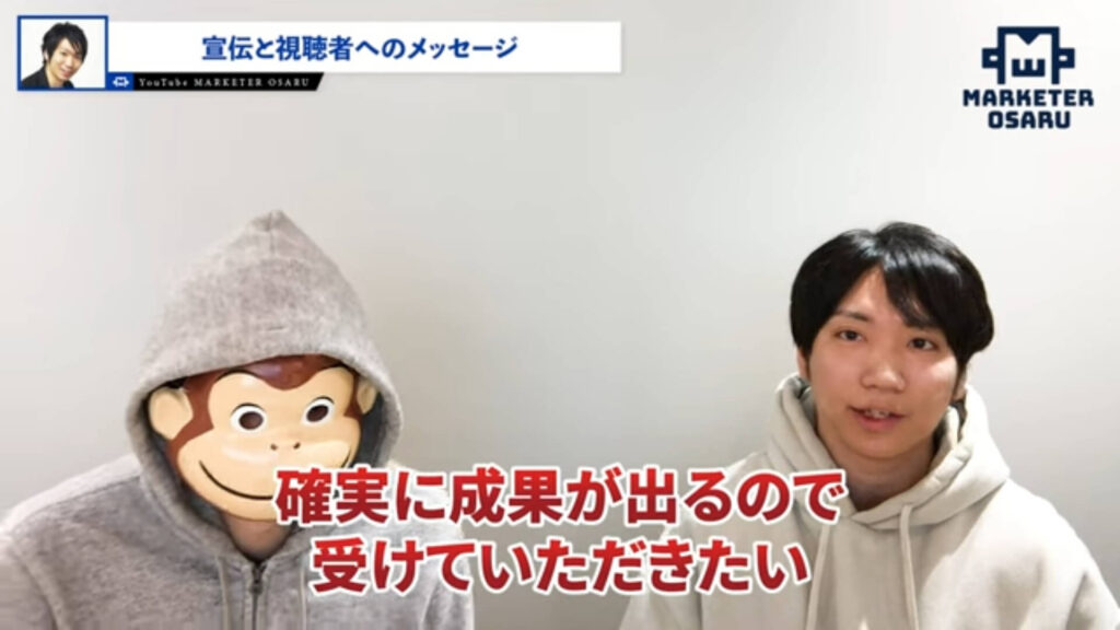 おさる:セミナー資料は、良い販売導線の価値提供をしてセールスまで繋げる資料ですが、それをうまく動画のセールスで使っていただきました。