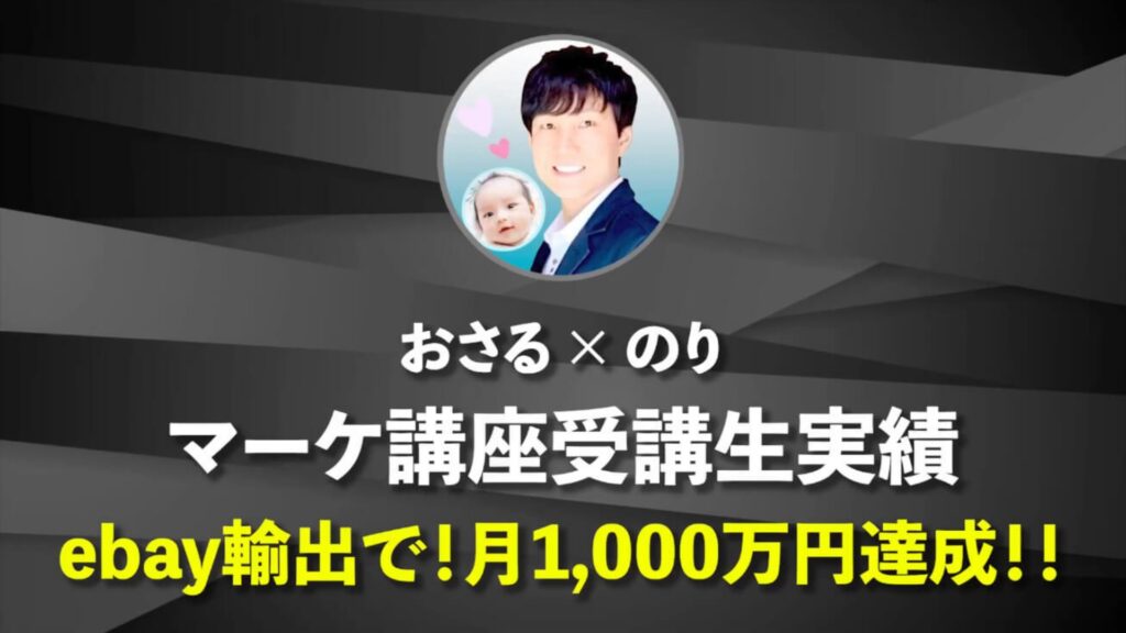 こんにちは!おさるです。今回は、SNS動画マーケティングとコンテンツ販売を組み合わせ、月商1,000万円を安定して達成している受講生「のりさん」にインタビューしました。のりさんは、世界版ヤフオクともいえる「eBay」で日本の商品を海外に販売しながら、YouTubeを活用して集客・販売を加速させています。