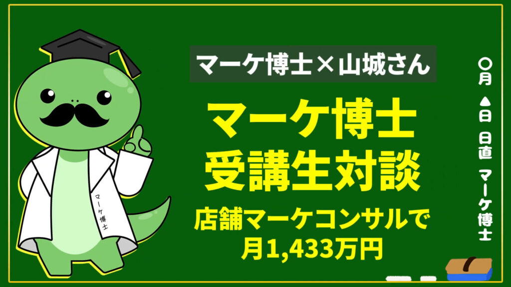 マーケ博士:今回はInstagram × コンテンツ販売の受講生である山城こうへいさんにお越しいただきました。今日はよろしくお願いします。
