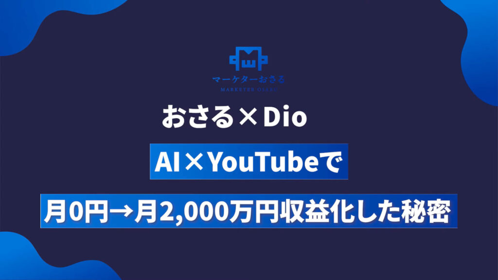 YouTube広告収益の不安定さに悩んでいたDioさんが「非属人型×AI活用×YouTube」の組み合わせで月商2,000万円を突破!この対談では、広告に頼らず安定収益を生み出す仕組みと、その裏で積み重ねてきた“泥臭い行動”の全貌をお届けします。
