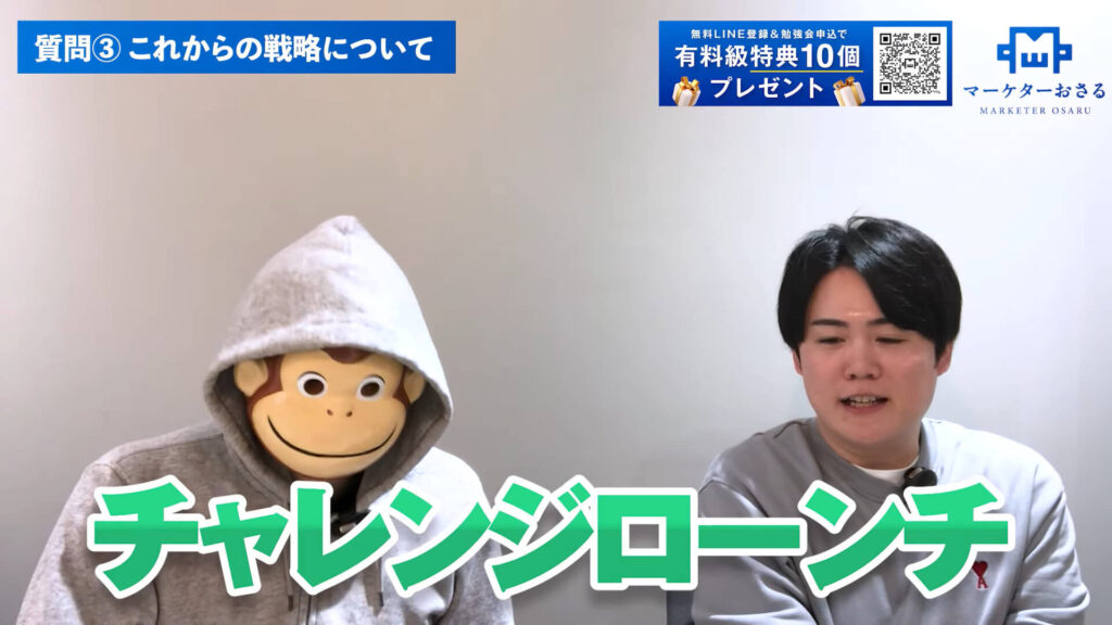 おさる:懐かしい(笑)。あのとき、確か初の講座ローンチで受講生2,500名超えましたからね。