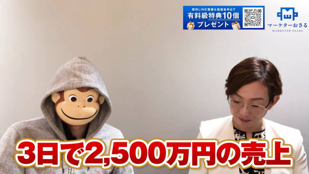おさる:それでも3日で2,500万はすごい(笑)。何が一番大きな要因でしたか?