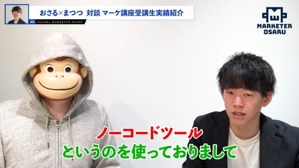 おさる:ノーコードというと、プログラミングを使わないということですか?