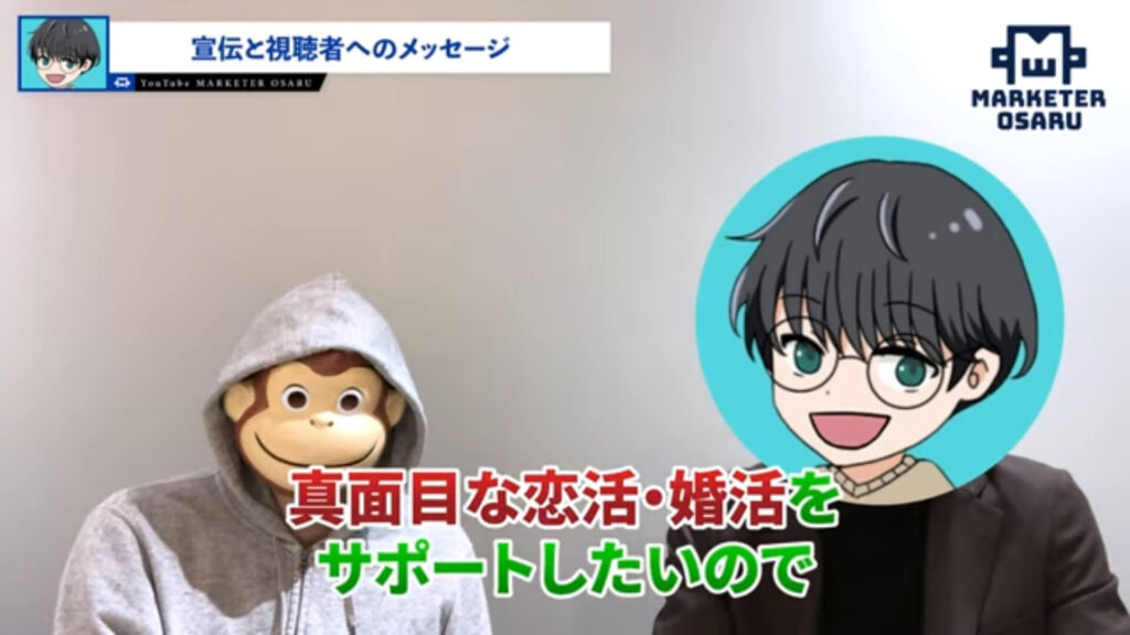 おさる:いわゆるナンパやゴリゴリ系の恋愛という形ではなく、真面目に恋活・婚活を頑張りたい方向けにやっていると。