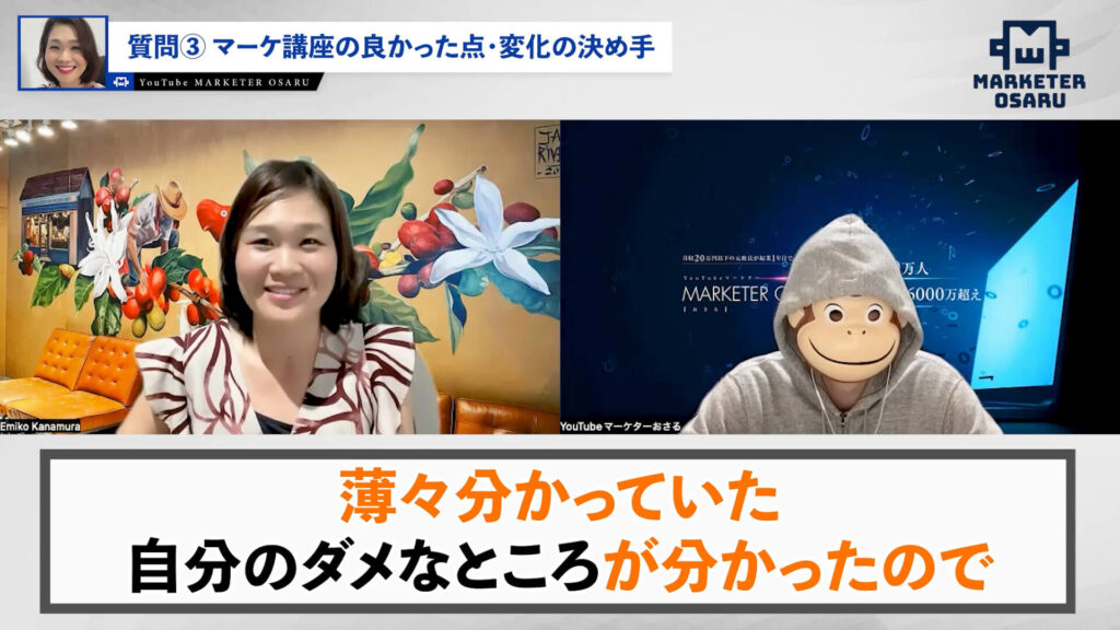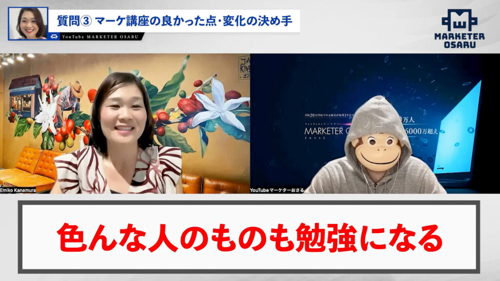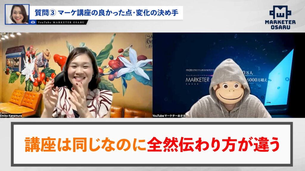 おさる:講座を受講してから、実際にどんな変化があったか教えていただけますか?